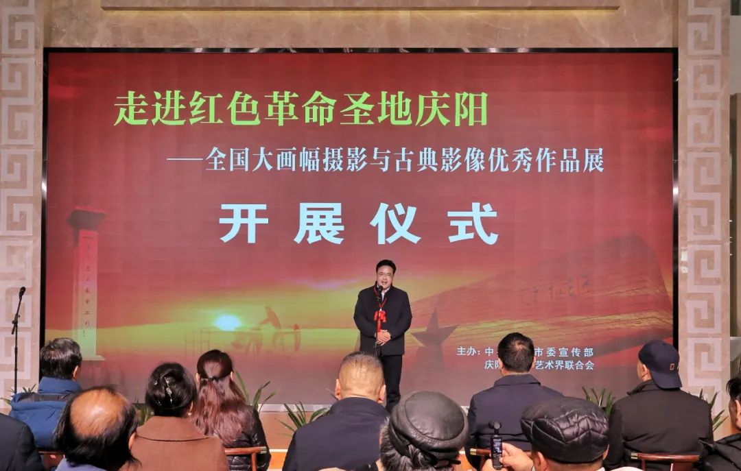 深圳市大画幅摄影协会主席、展览总监宋国智介绍展览筹备情况,庆阳市文联党组成员、副主席闫长科出席并致辞,市文联党组成员、副主席鱼自灵主持开幕式。