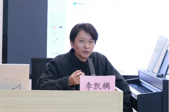 一级作曲、中国文艺志愿者协会理事李凯稠围绕歌曲的旋律与和声创作等主题,通过解析如何打破常规、开辟思路,创作富有新意的歌曲作品,为学员进行了专家授课与作品分析点评。