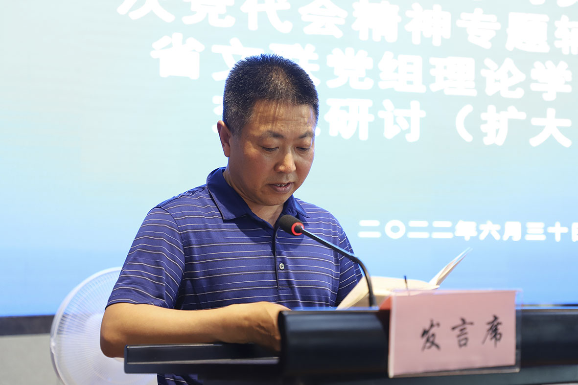 下午,围绕学习贯彻省第十四次党代会精神,以“坚定文化自信,推进守正创新,开拓进取、砥砺前行,为全面建设社会主义现代化幸福美好新甘肃而努力奋斗”为主题,组织开展省文联党组理论学习中心组交流研讨(扩大)会议。省文联党组成员、副主席马青山、省音协主席左霞、省剧协副主席马少敏、中铁二十一局文联副主席张兰忠、新艺联执委会副秘书长黎明、甘肃改琴书法教育奖励基金会理事尚再国等6名同志进行了交流发言。