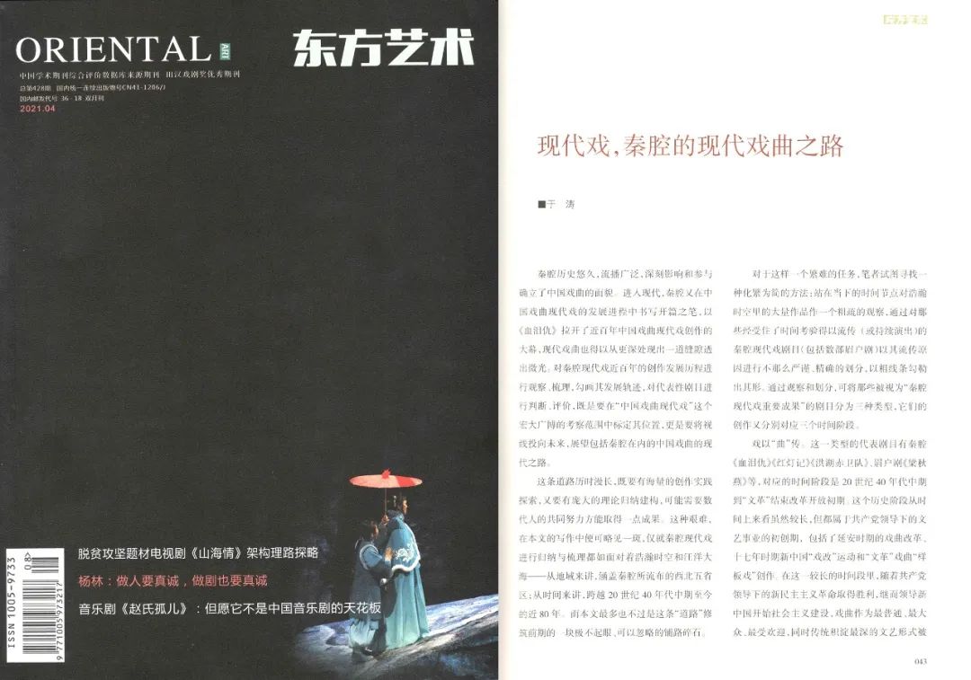 31《现代戏,秦腔的现代戏曲之路》获第36届田汉戏剧奖理论类一等奖
