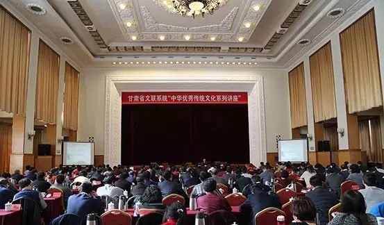 省文联文艺理论研究室紧抓文艺繁荣发展的历史机遇,紧扣时代脉搏,传播正能量,弘扬中华优秀传统文化,提升我省文艺理论研究工作者的综合素养。2017年,参与举办“中华优秀传统文化系列讲座”和“道德讲堂”,负责邀请授课专家和讲座内容设计。在内容设计上:一方面深入学习习近平新时代中国特色社会主义思想、习近平总书记在文艺工作座谈会上的重要讲话精神,把好我省文艺理论研究的方向盘;一方面讲授中华传统优秀文化、古代经典文论和甘肃文化历史资源等内容,思考如何构建具有中国特色的文艺理论与评论学科体系、学术体系和话语体系,为提高我省广大文艺理论研究和评论骨干、文联系统工作人员的综合理论素养起到了积极作用。